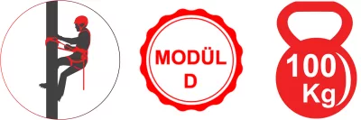 - Lanyard yüksek mukavemetli Ø 12 mm EN 1891 standartlı halattan imal edilmiştir.